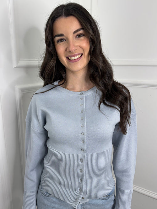 Baby Blue Press Stud Knit Cardigan