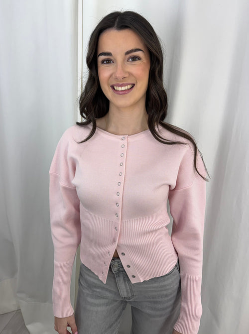 Baby Pink Press Stud Knit Cardigan